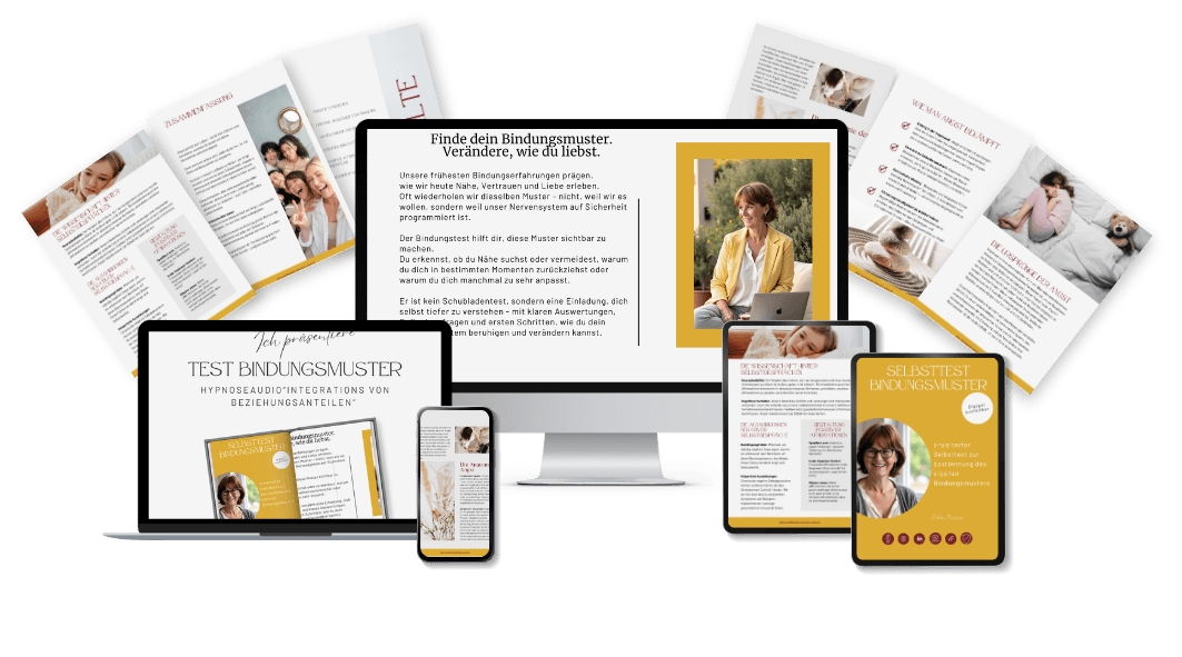 Daraus ist auch mein aktuelles Projekt entstanden: der Bindungsmuster-Selbsttest mit Hypnose-Begleitung, der Verstehen und Fühlen miteinander verbindet.